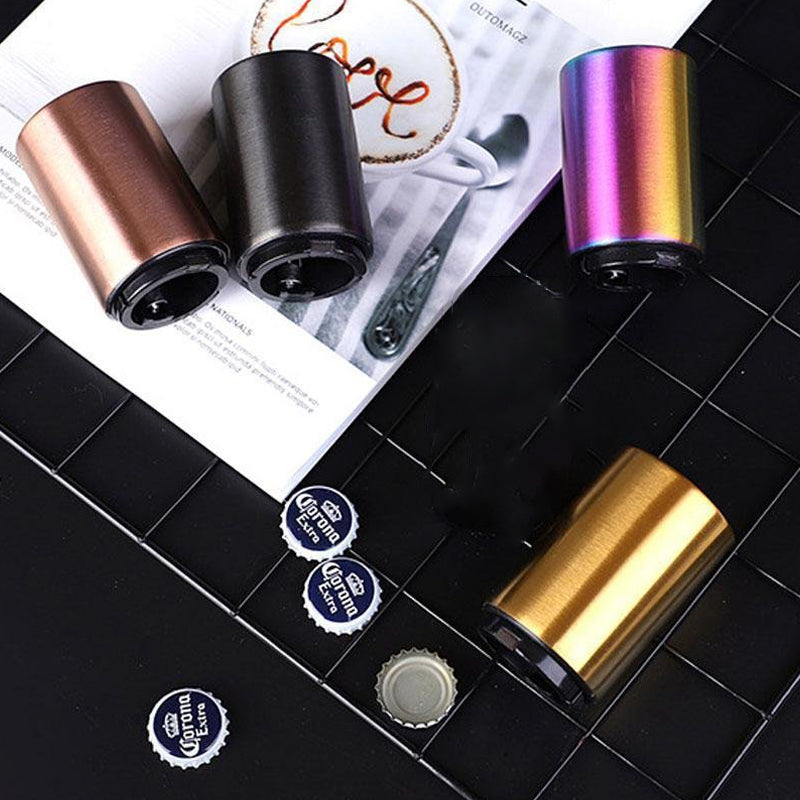 Creative Automatic Bottle Opener that can suitable for parties, packed with portable beer bottles. Different from other bottle openers, it has a magnetic bar that can be opened by simply aligning it with the Bottle mouth, pressing it down, and lifting it up. Very easy to use!
