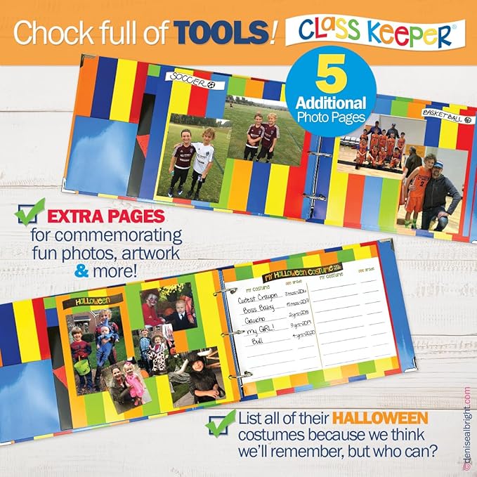 - Collect keepsakes in the pocket (awards, drawings, report cards).