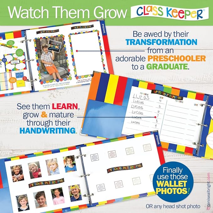 Track your child’s yearly growth with a wallet-sized photo slot for every school year.