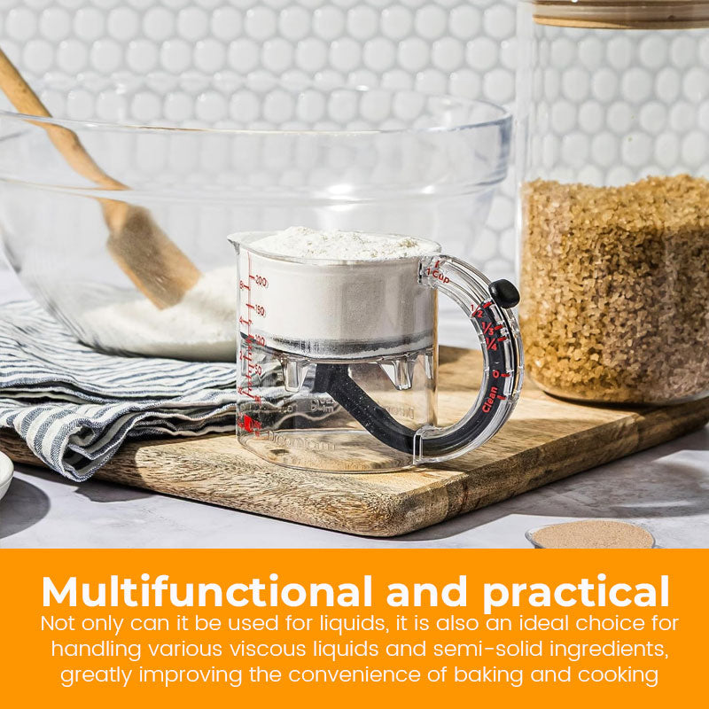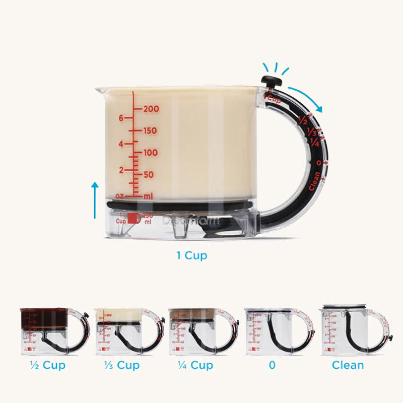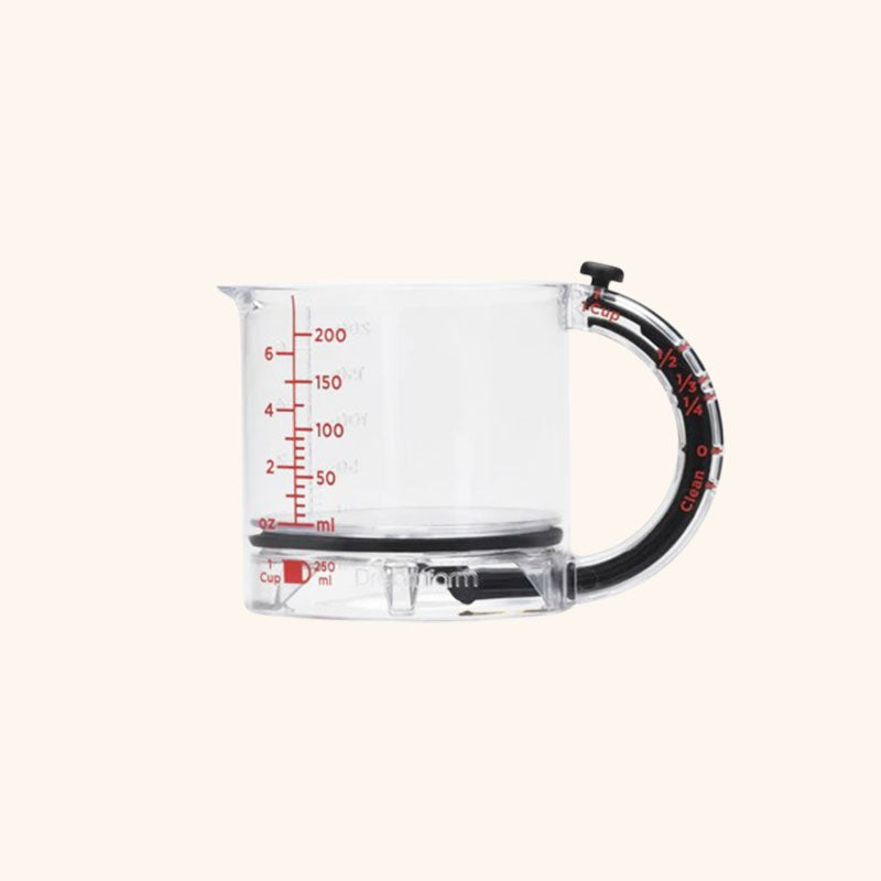Tired of cluttering your kitchen drawer with multiple measuring cups for different sizes? This all-in-one adjustable measuring cup simplifies baking and cooking by combining 4 essential measurements in a single tool. From 1/4 cup to 1 full cup, it’s designed to handle sticky ingredients, clean easily, and stand up to daily use—making it a must-have for home bakers and busy cooks.