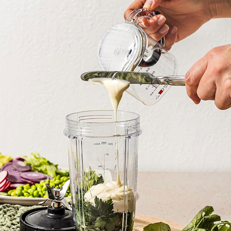 Scrape every last drop: Raise the base all the way to the top to push out every bit of thick ingredients. No need for a spatula to scrape the sides—this cup does the work for you, saving time and reducing mess.