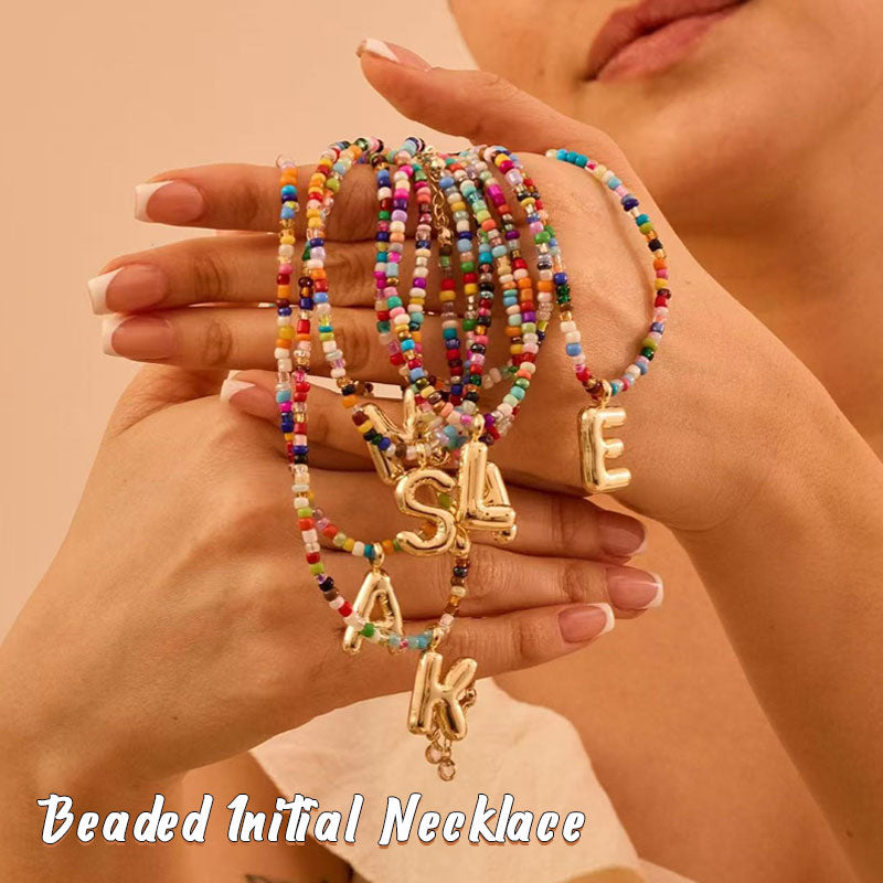 Hand-strung glass beads frame a glossy 14K gold-plated initial—turn every outfit into a personal statement with a burst of charm.